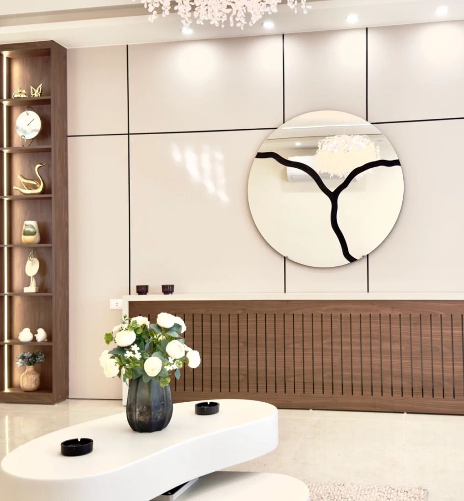 المشروع بأكمله كان تحت إشراف فريق الخداش للتصميم الداخلي، من أول رسمة إلى آخر لمسة تشطيب، باستثناء الأثاث الذي اشترته العميلة بنفسها. بفضل التخطيط السليم والمتابعة المستمرة، تم تسليم المشروع في وقته وضمن الميزانية، مع ضمان جودة عالية في كل مرحلة.